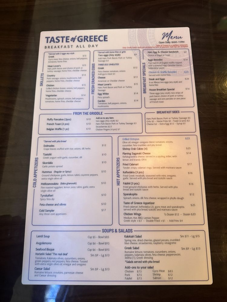 Taste of Greece Menu
